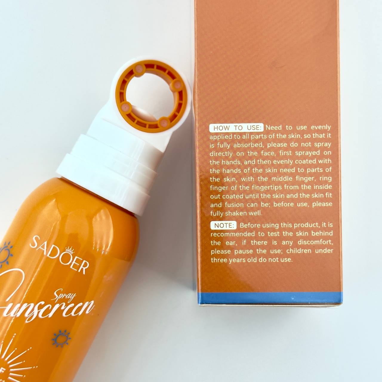 اسپری ضد آفتاب و سفید کننده سادور spf50 دوکاره: ضد آفتاب و سفید کننده و دارای فاکتور حفاظتی +++pa و حاوی مواد طبیعی سفید کننده صورت و بدن مناسب افزایش شادابی و درخشندگی پوست با ماندگاری بالا 12 ساعته می باشد.